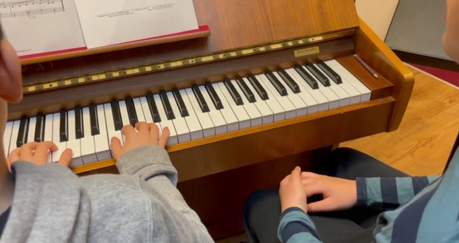 D, enfant prodige, en est à son 3ᵉ cours de piano.